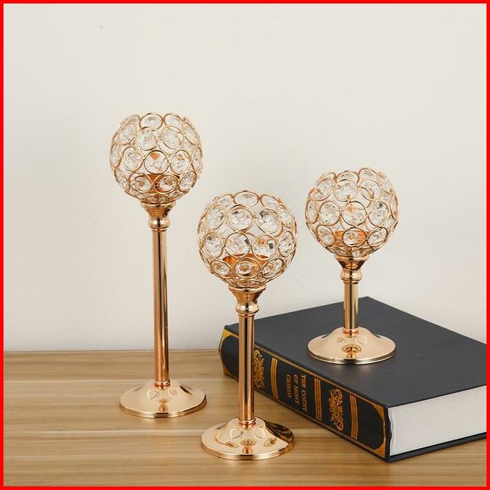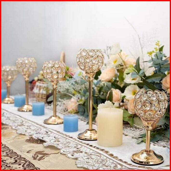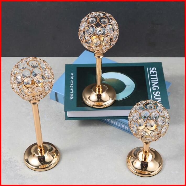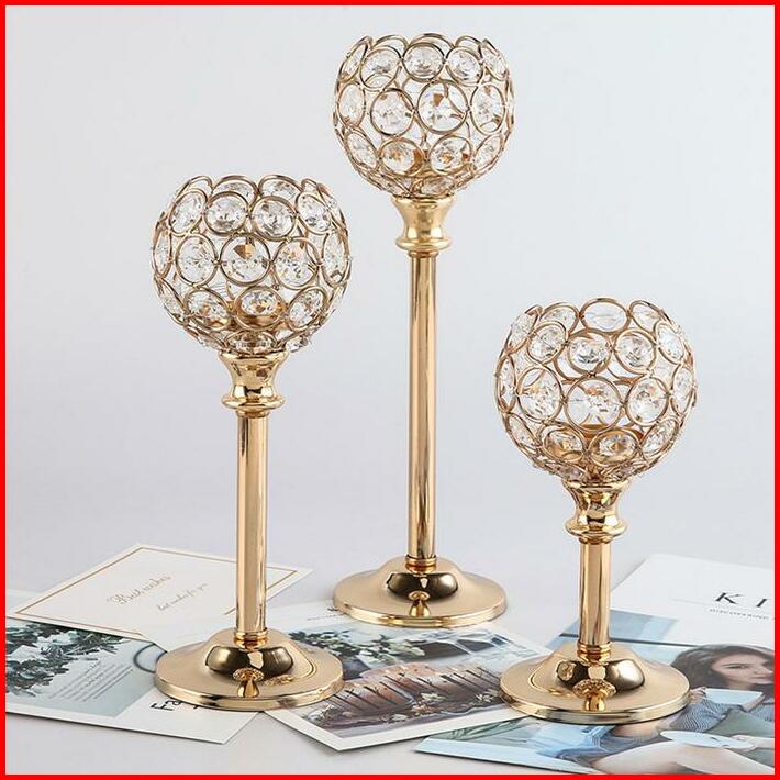 Optivia Candelabra Ornamen Dekorasi Paket Individu 3 Height Golden Crystal Candle Holder Dekorasi Rumah Cahaya Lilin Mak