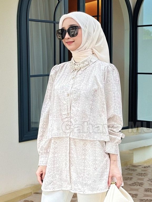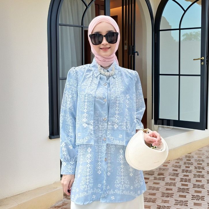 (TERLARIS)Motif Atasan Wanita Casual Blouse Vintage Motif Etnik Lengan Panjang