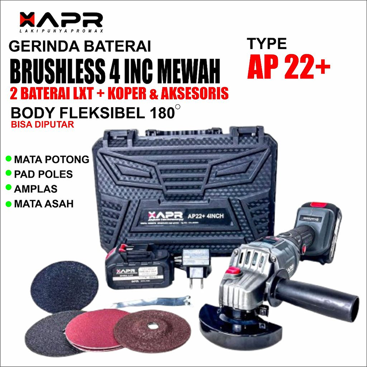 Gerinda Baterai APR AP22+ Grinda Angel 4inch Layar Digital Brushless 2baterai lxt 10cell Mesin Pemotong Serbaguna