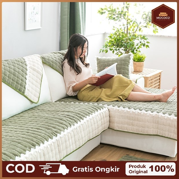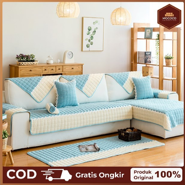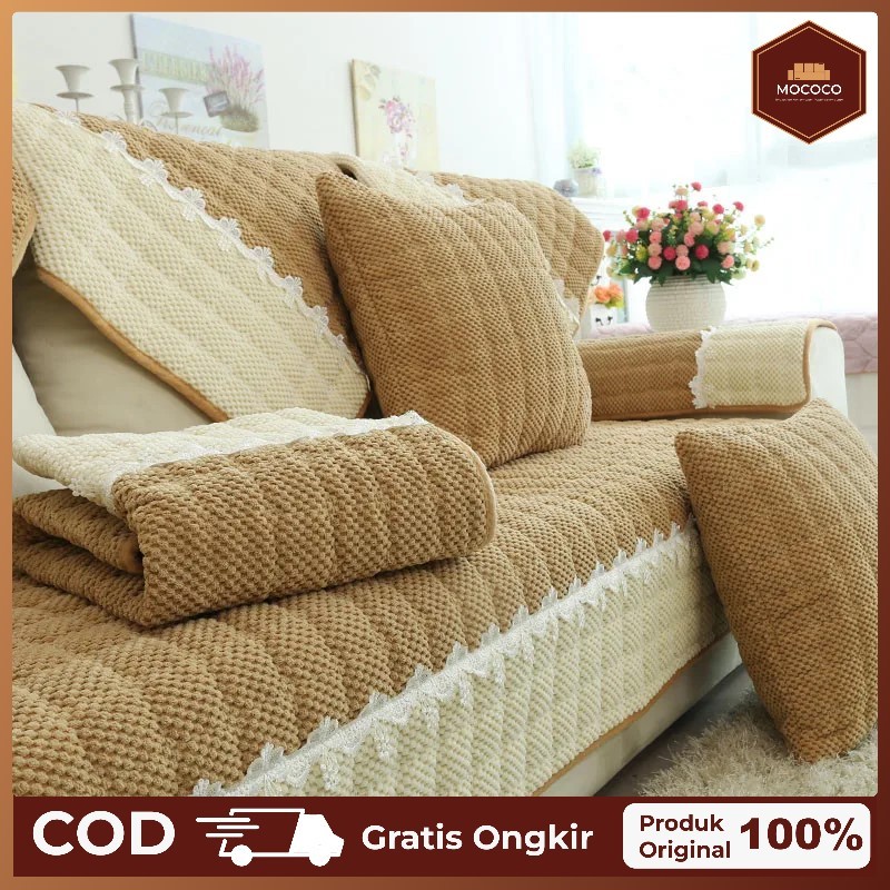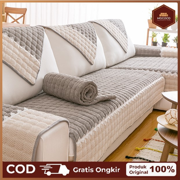 Mococo Cover Alas Sarung Sofa Mewah 1 2 3 4 Seater Penutup Kursi Sofa Ruang Tamu Antislip Anti Dust