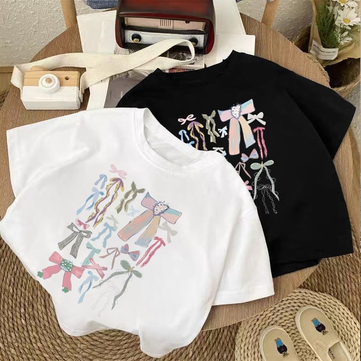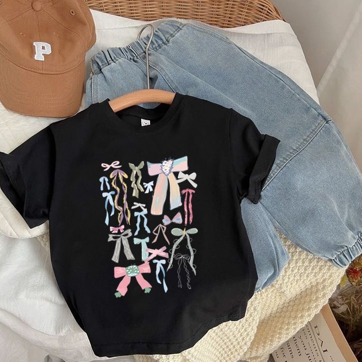 korea style Putih cocobaby t shirt cotton Kaos Atasan Anak laki-laki Perempuan | Korean Simple Bowknot Fashion Print Ch