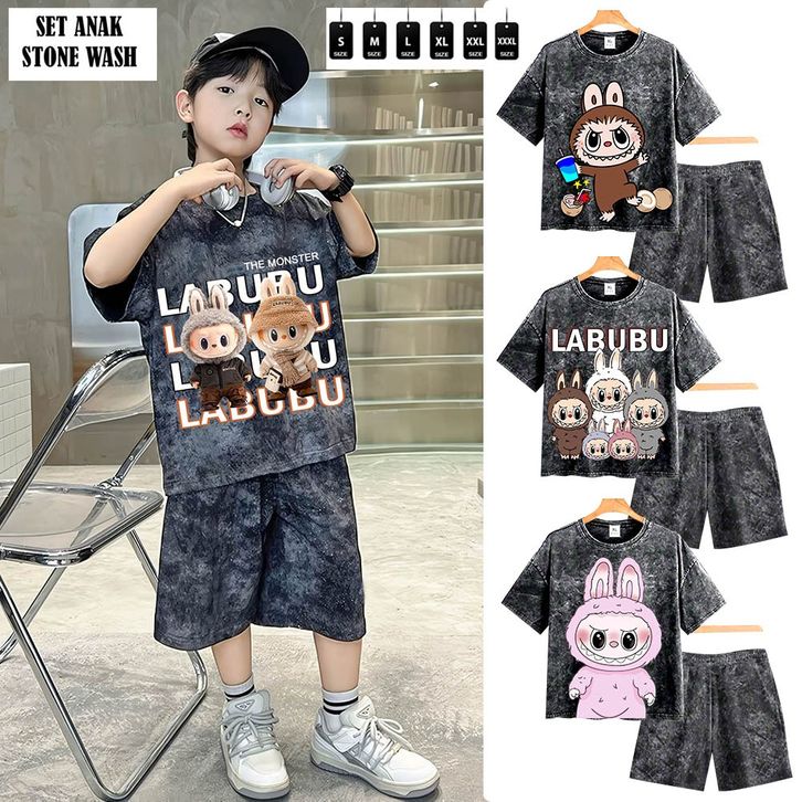 Paket Bundle 5 PCS Fashion Anak Unisex Stelan Stone Wash DAN DENIM 3/4 Cocok untuk Anak Laki-laki
