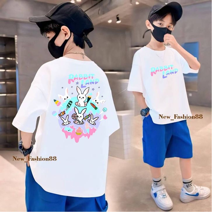 Kaos distro anak motif rabbit bahan lembut digital printal catton combed B14