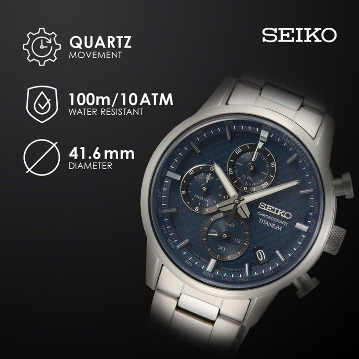Jam Tangan Pria Seiko Chronograph Titanium SSB387P1 SSB387 Quartz Original