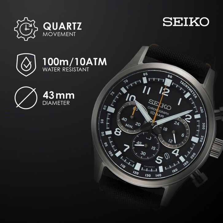 Jam Tangan Pria Seiko Chronograph SSB449 SSB449P1 Quartz Nylon
