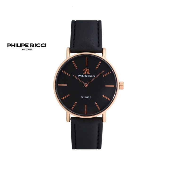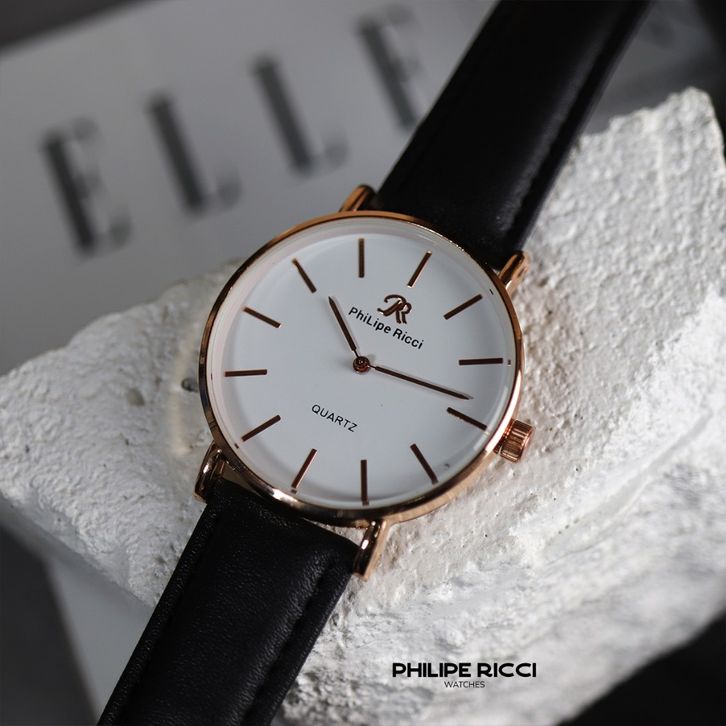 PhiLipe Ricci Jam Tangan Pria 100% Original Tipis Tali Kulit Quartz Cowok Kasual Analog Dial Bulat Strap Leather Model S