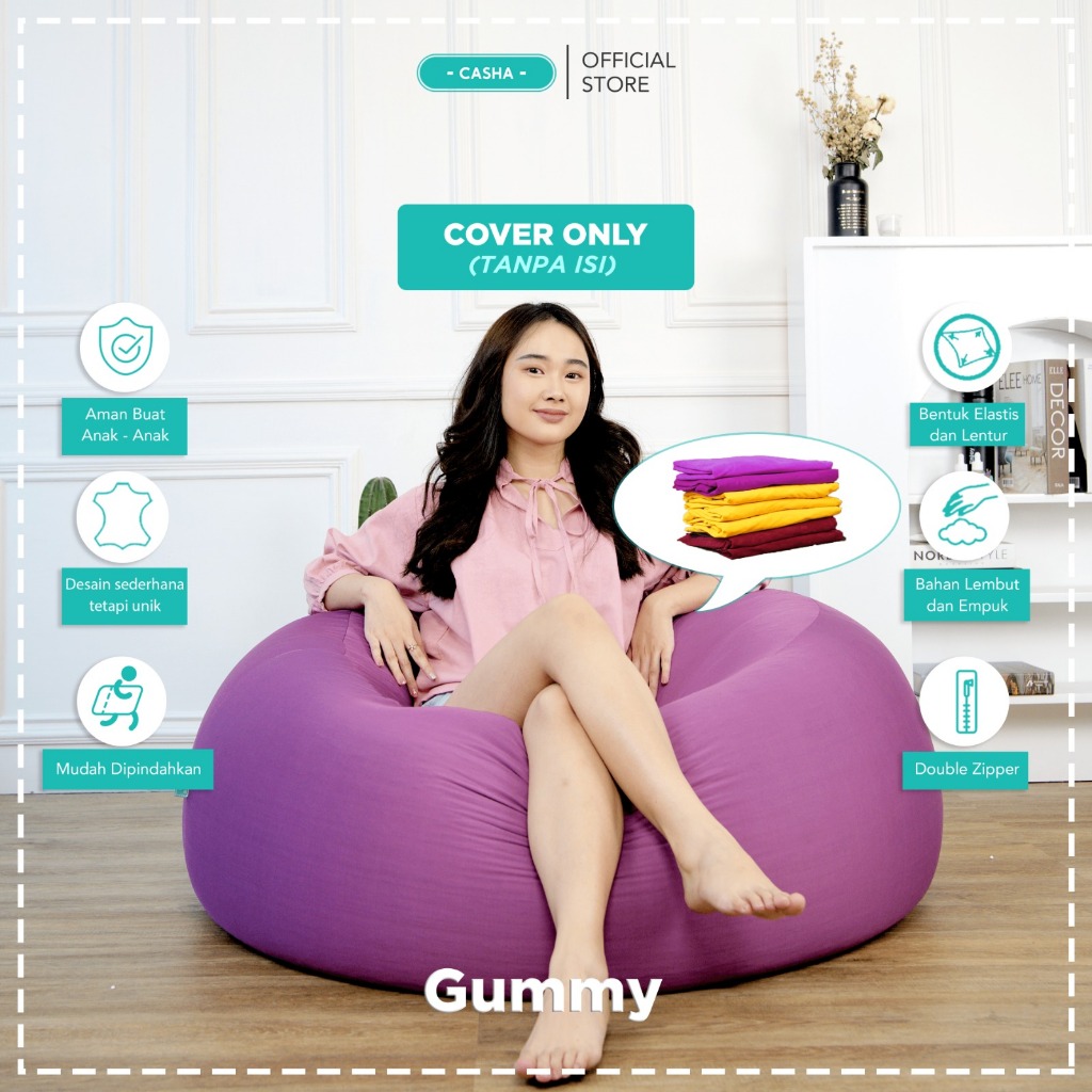 (COVER ONLY) A Bean Bag Gummy Bahan POLYESTER STRETCH TANPA ISI - Bean Bag Murah - Bean Bag Dewasa - Sofa Millenial