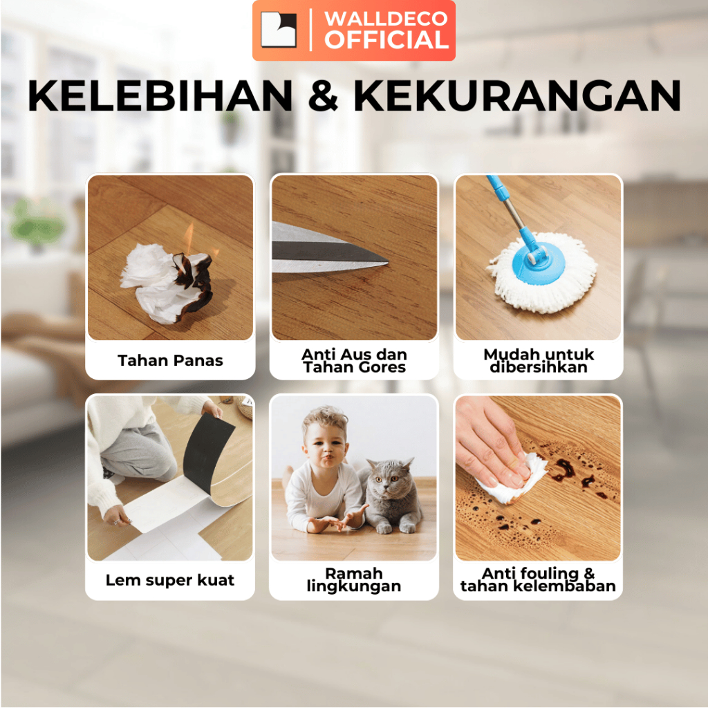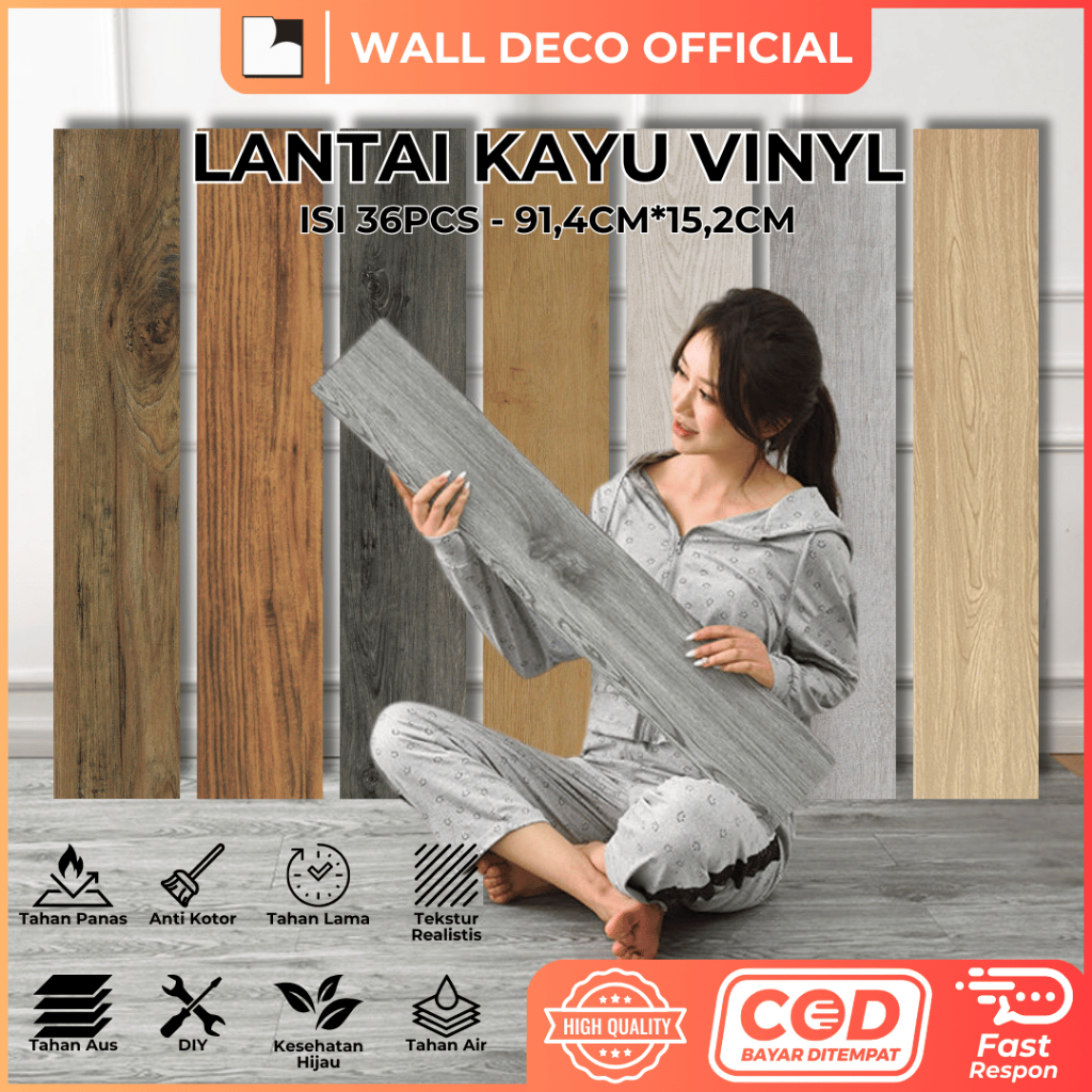 Lantai Vinyl Lantai Vinyl Stiker PVC Vinyl Lantai Kayu Premium Flooring Sticker 1 Dus (36 Pcs) 91.4 cm X 15.2 cm Lantai