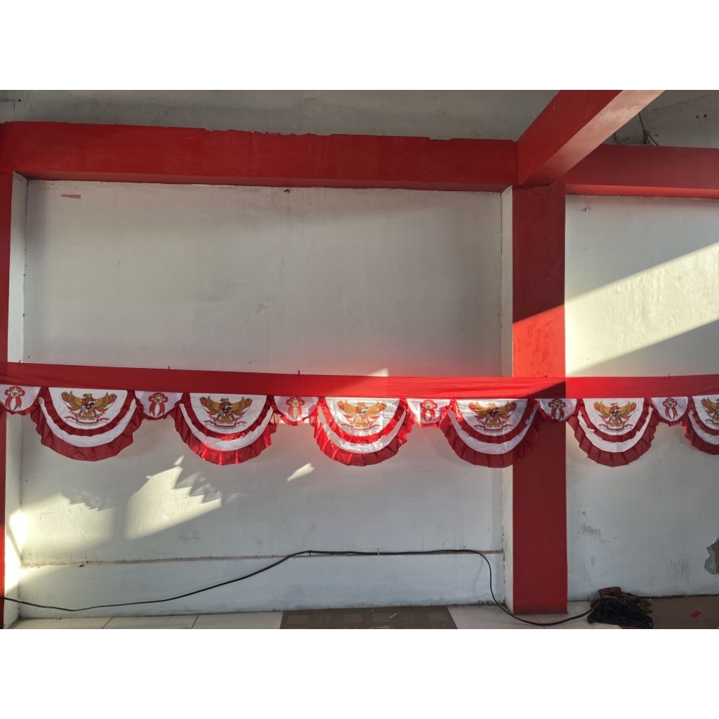 Bendera bekron garuda rempel bunga aksesoris perlengkapan 17 agustusan panjang 5-10 glombang
