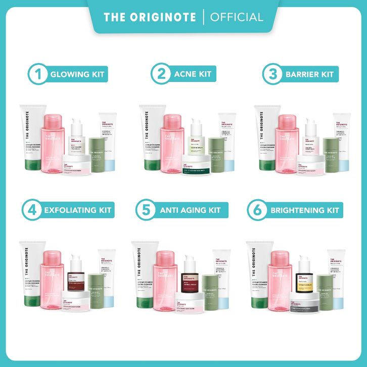 The Originote 6in1 Bundle Paket Skincare Micellar Water Facial Cleanser Serum Moisturizer Sunscreen Clay Stick