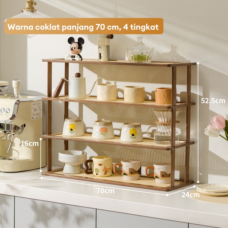 Rak Bumbu Dapur Susun Rak Dapur Serbaguna Kayu Rak meja Rak Cangkir Rak Botol Bumbu Dapur Rak Penyimpanan