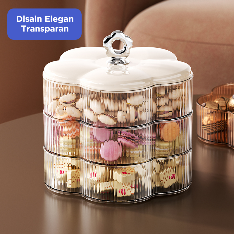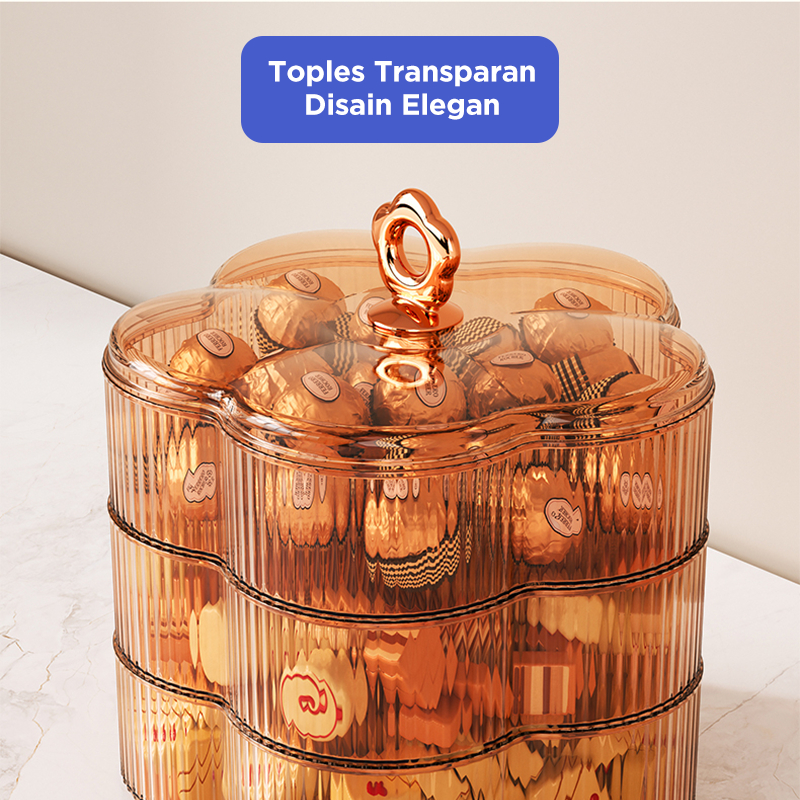 WAYHOME MARKET Toples lebaran Tingkat Toples Bunga Toples Makanan Snack Toples Coklat Permen 4 Susun Toples Kue