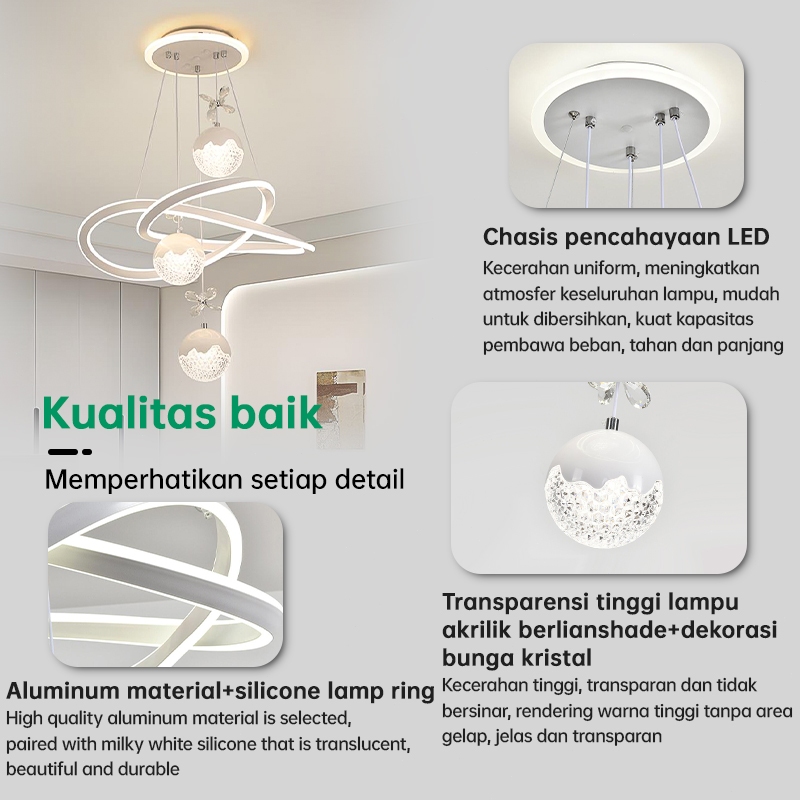 Lampu Gantung Kristal Nordik Modern 72w Led 3 Warna Lampu Gantung Ruang Tamu Ruang Makan ORIGINAL BEST SELLER
