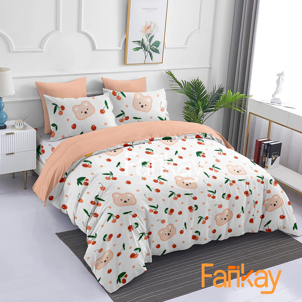 Bed Cover Set Sprei Cherry Bear Mix Peach - Ukuran Lengkap 180x200/160x200/200x200 - Fankay Bedcover