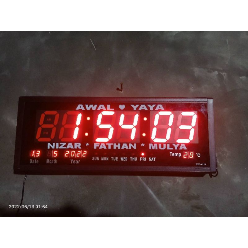 JAM DINDING DIGITAL Sonifer LED MERAH 48 x 19 cm SMS-4819 (+) FREE CUSTOM NAMA