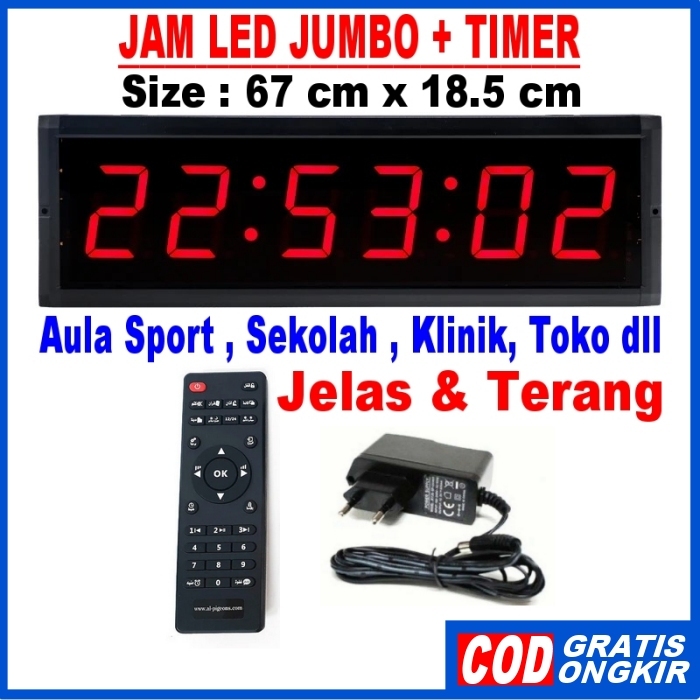 Jam Dinding LED JUMBO 67 CM TIMER SPORT CENTER Stopwatch Countdown Aula Besar Sekolah Klinik Toko Masjid Mushola Gereja