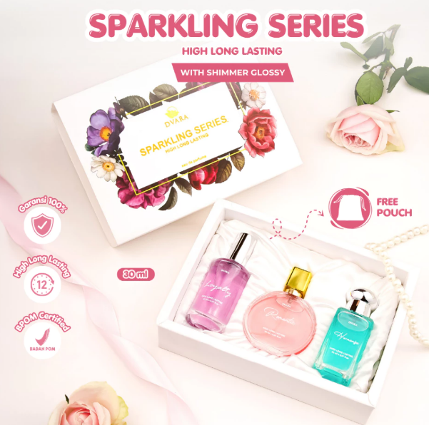 PARFUM HIGH LONG LASTING DVARA SPARKLING SERIES, DAPAT 3 PARFUM PREMIUM TAHAN LAMA MEWAH CEWEK