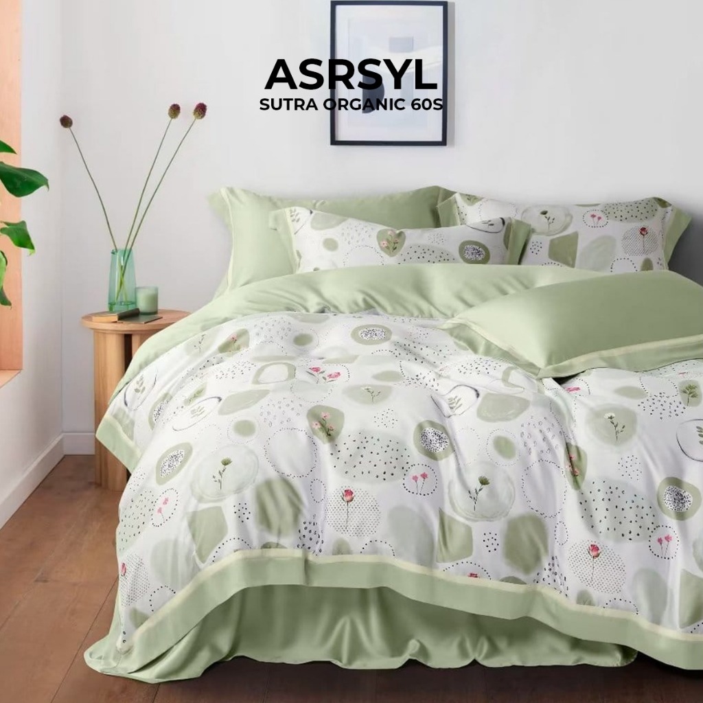 Sprei Set Sutra Organik 60s Serat Bamboo/ sprei sutra silk Motif Estetik Bunga Daun Ranting Polos Mewah Original Sutra -