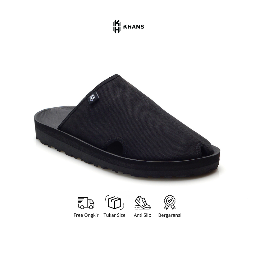 KHANS - Sandal Slipper Pria Wanita - Max Black