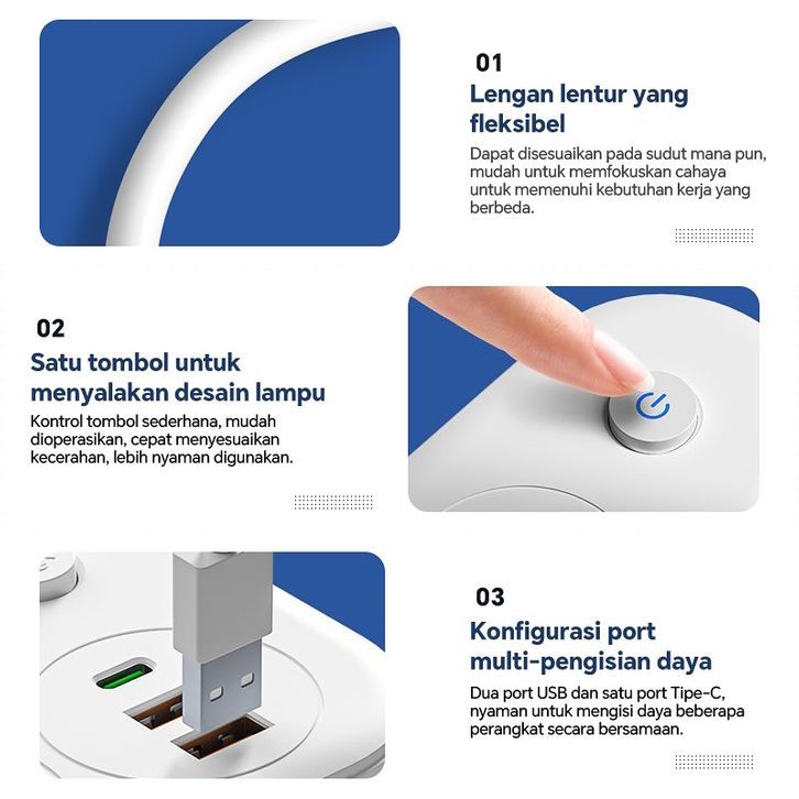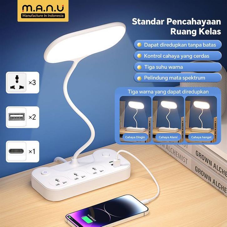 Lampu LED Belajar MANU Rechargeable Tricolor Adjustable Baca Multifungsi