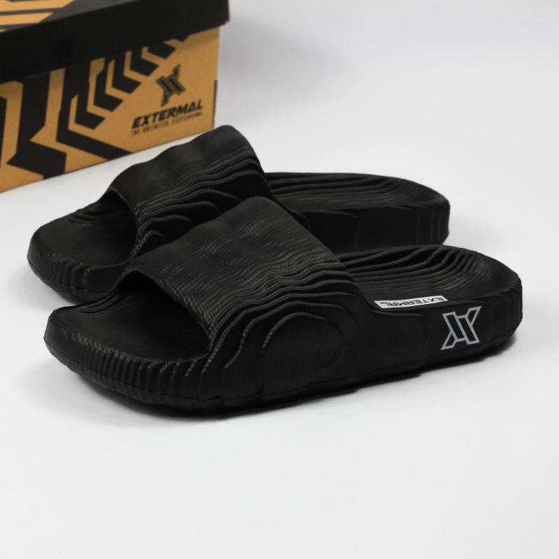 EXTERMAL - Milestone Black - Sandal Slide Slip On Casual Pria Kekinian Selop Cowok