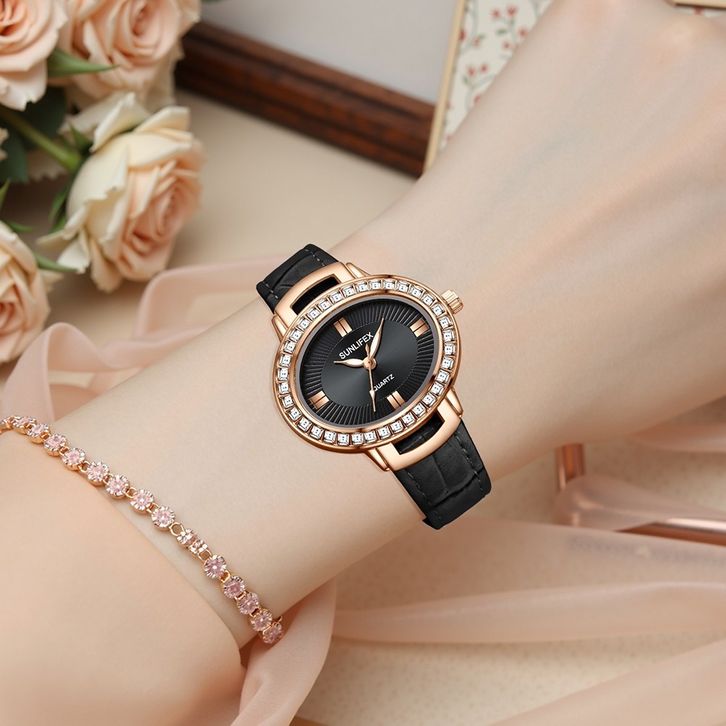 Sunlifex Jam Tangan Wanita Original Korea Kuarsa Antik Tali Kulit Kasual Oval Jam Tangan Cewek E052