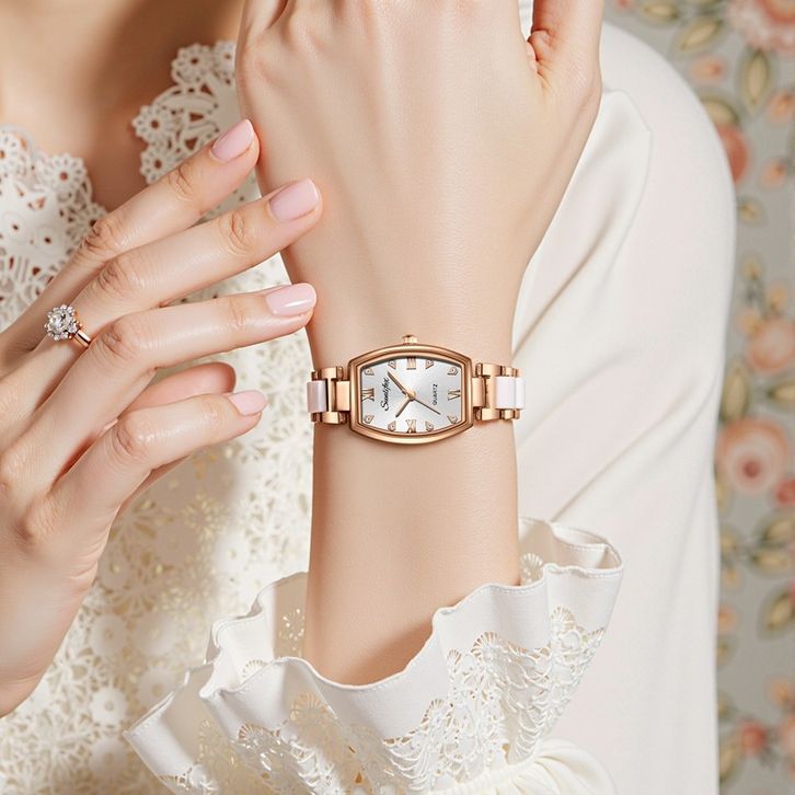 Sunlifex Jam Tangan Wanita 8016 Korea Kuarsa Tali keramik Anti Air Jam Tangan Cewek Original