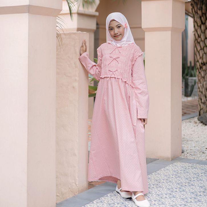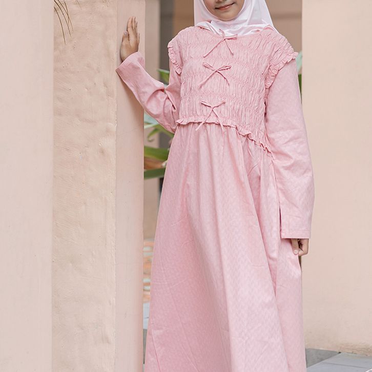 Shirt dress maxi cotton/ Ghamis dress katun anak/ Rodeo Junior Girl Pink Blush
