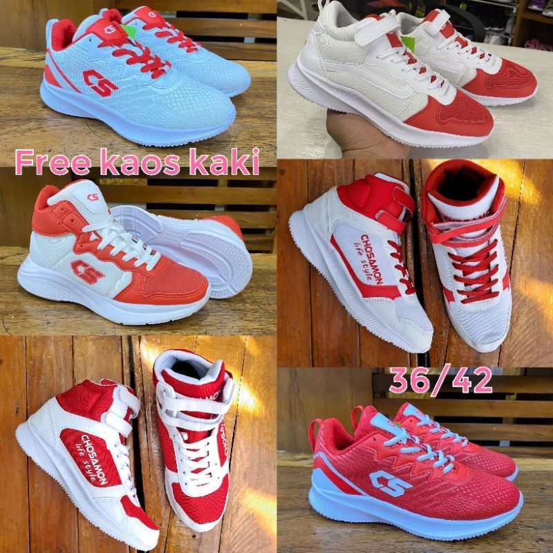 sepatu senam zumba sepatu olahraga chosamon terbaru sepatu chosamon merah putih ringan 17 Agustus
