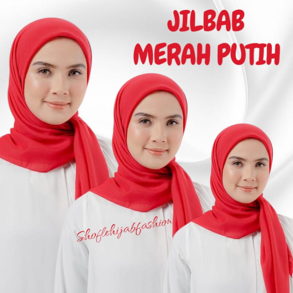 JILBAB MERAH PUTIH KERUDUNG SEGI EMPAT POLOS KEMERDEKAAN WARNA MERAH CABE BENDERA PUTIH SERAGAM