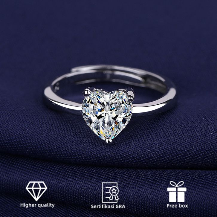 Cin cin Wanita Adjustable Lamaran Jantung Ring Couple Fashion Aksesoris Anti Karat Luntur Free box