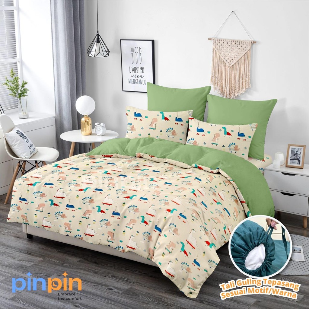 Bedcover Set Sprei Dino Doodles Cream Mix Sage Ukuran Lengkap - 180x200/160x200/200x200