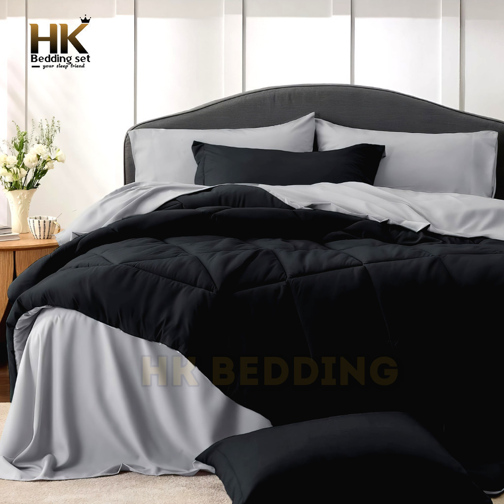 Bed cover set sprei polos abu hitam uk 90X200 100x200 120X200 140x200 160X200 180X200 200X200