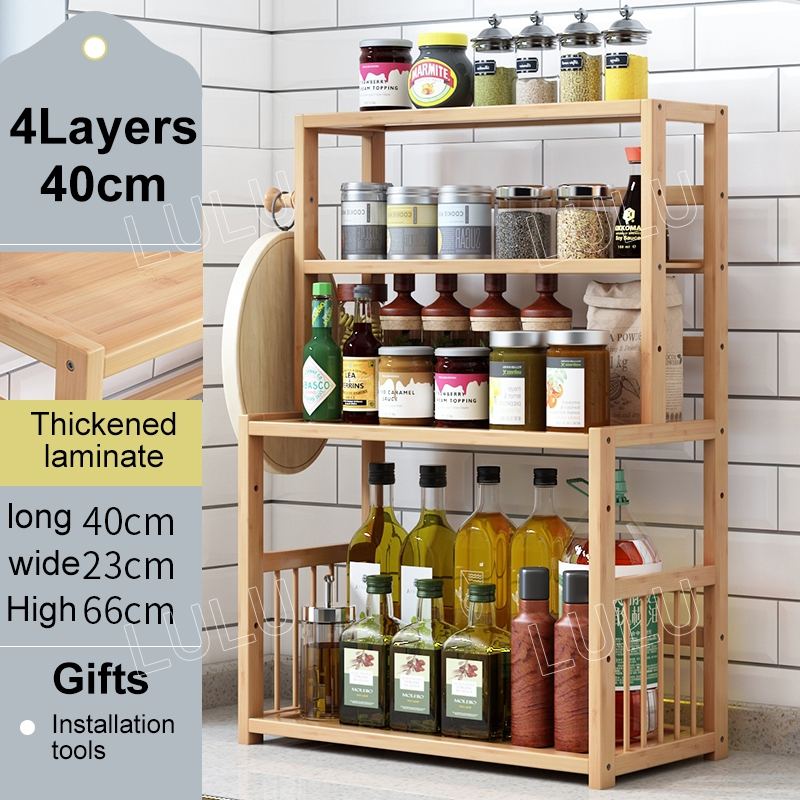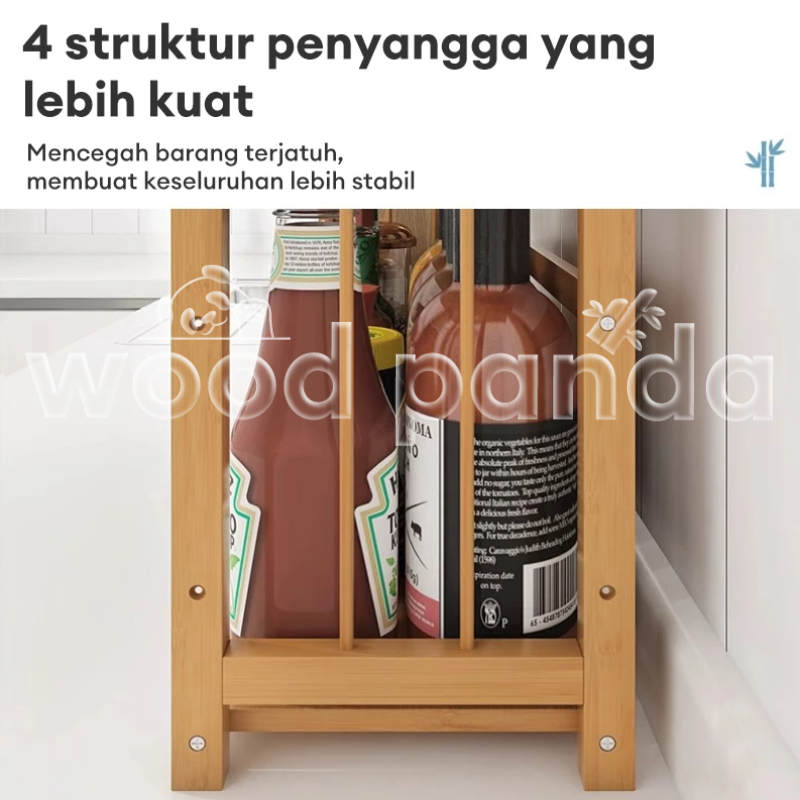 Rak Dapur Serbaguna Rak Penyimpanan Susun Rak Bumbu Dapur Tempat Bumbu Kayu 2 Susun Bambu