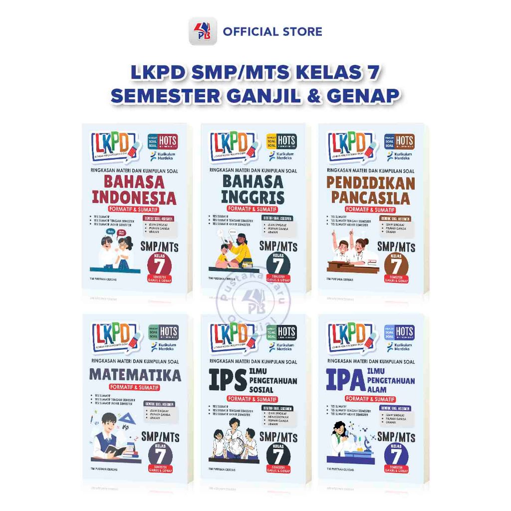 Buku Paket 6 Buku LKPD Ringkasan Materi & Kumpulan Soal SMP / MTs Kelas 7 Semester Ganjil & Genap 6 Mata Pelajaran Kurikulum Merdeka / Pustaka Baru Press – PB