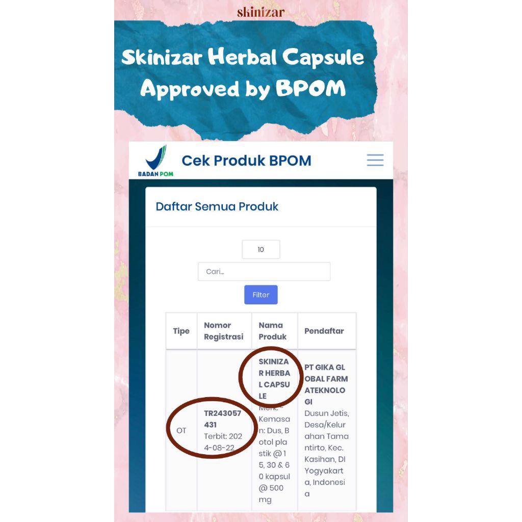 Skinizar Herbal Capsule | Pemutih Badan Herbal | Pemutih Kulit Seluruh Tubuh