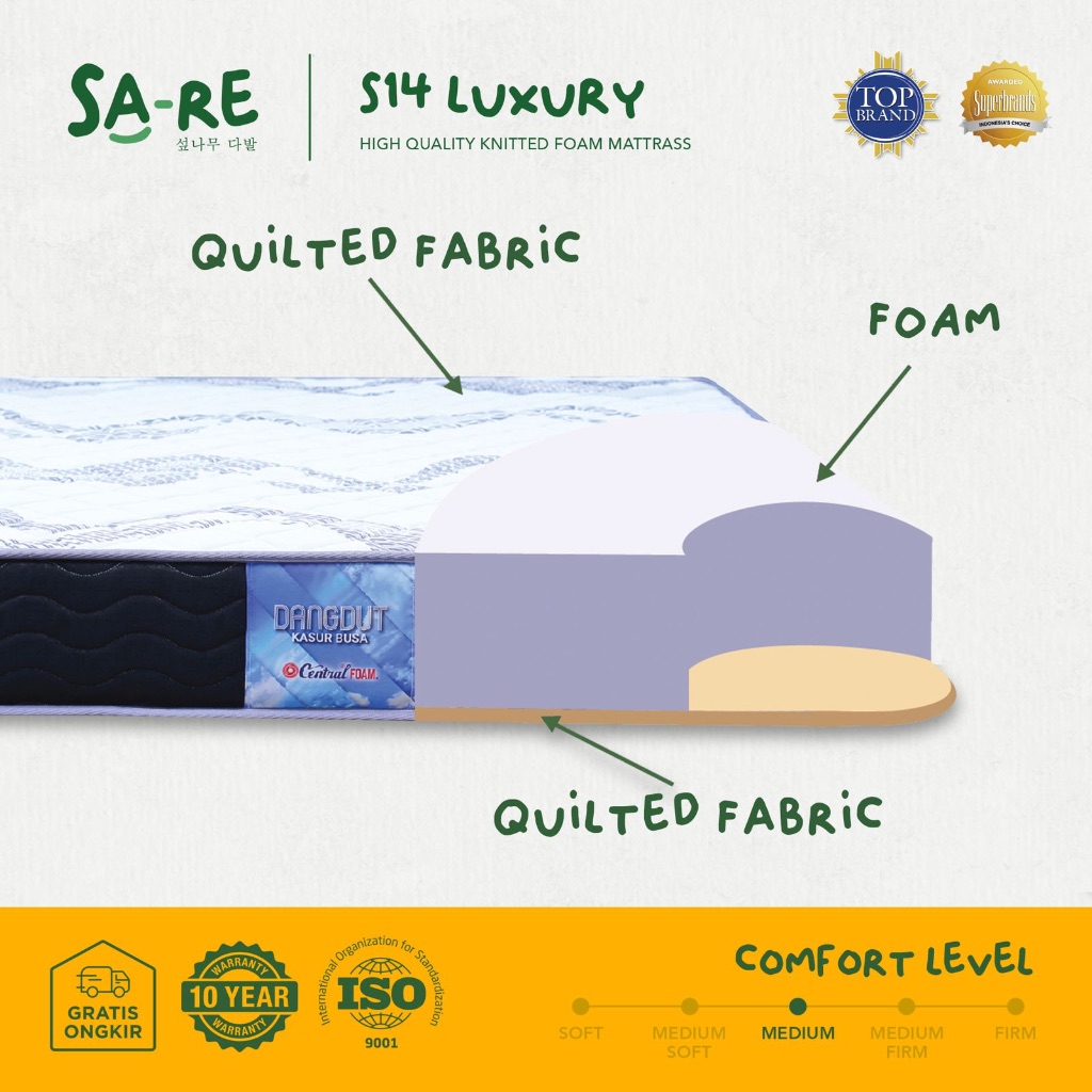 SA-RE Kasur Busa Luxury Dengan Kain Quiltng Garansi CENTRAL S-14 LUX