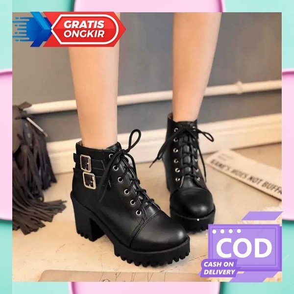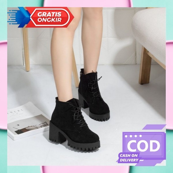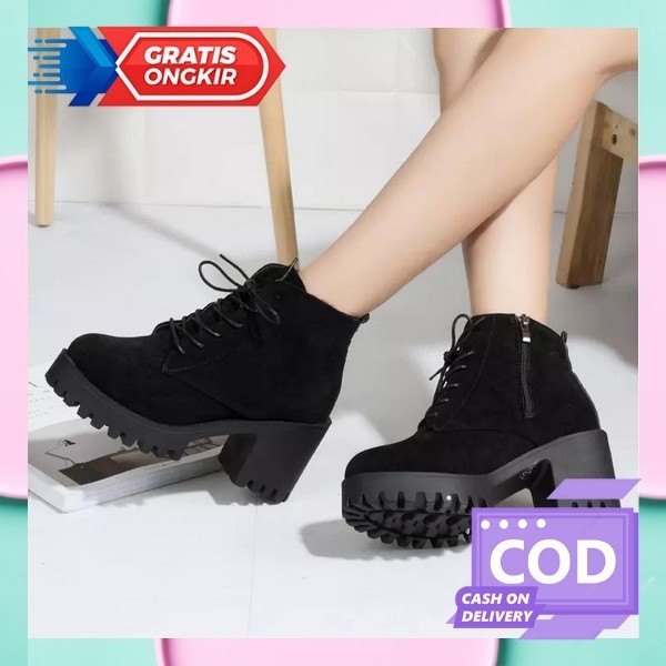 Sepatu Cewek Bot Hils Ootd Fasion Both Hitam Boot Hak Hels Tinggi 6Cm Boots Wanita Korea Kekinian Terbaru Sepatu Boots H
