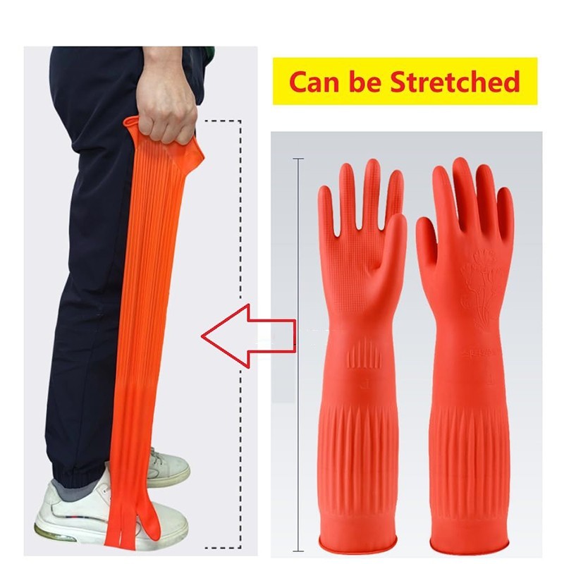 Sarung Tangan Karet Tebal Anti Air 45cm Sarung Tangan Cuci Piring Panjang Anti Selip Household Gloves