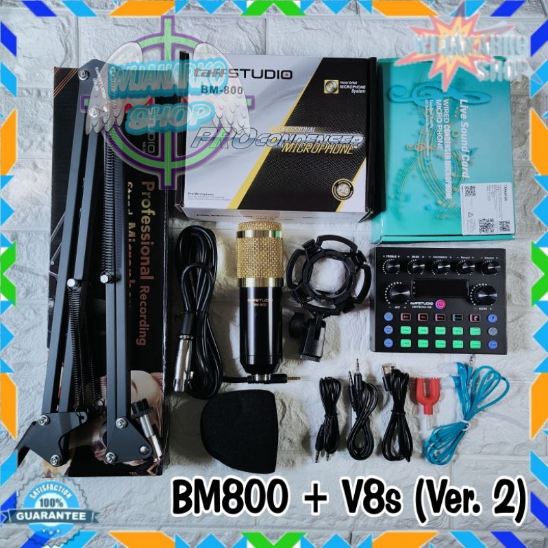 PAKET STREAMING REKAMAN HEMAT [2] BM800 + Audio Soundcard V8 V8s V8 Plus F998