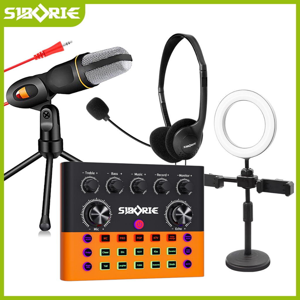 Siborie F993 Soundcard +SF666 Mic + H1 Headphone + Lampu Paket Lengkap Soundcard Bluetooth Streaming Langsung Siap
