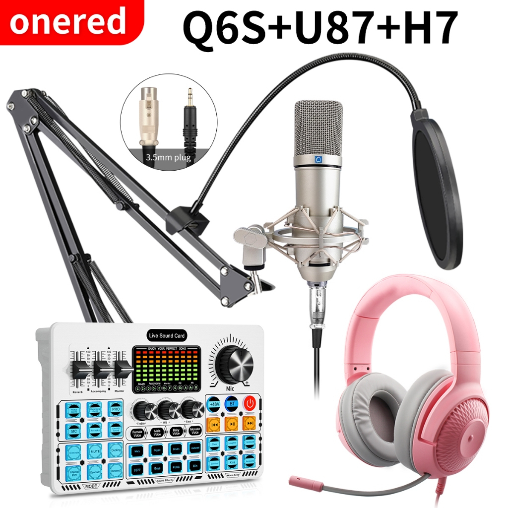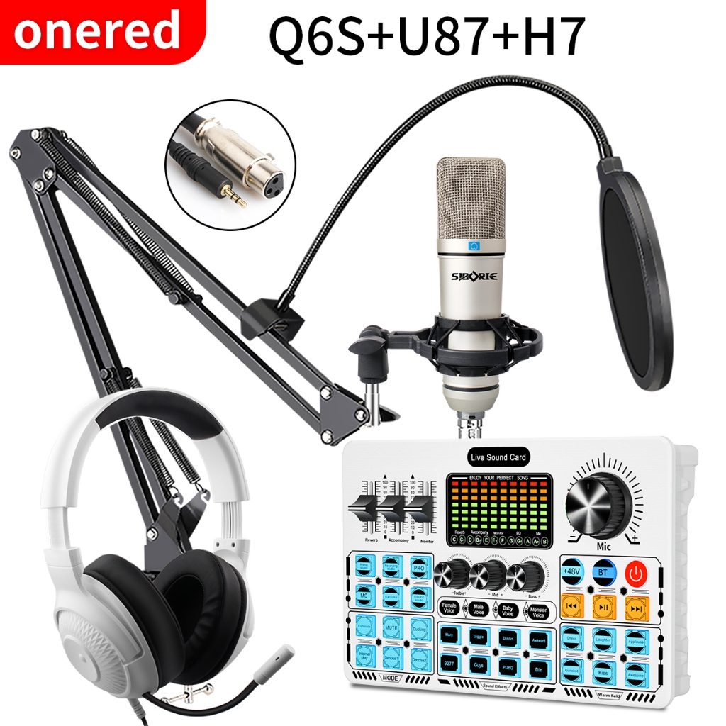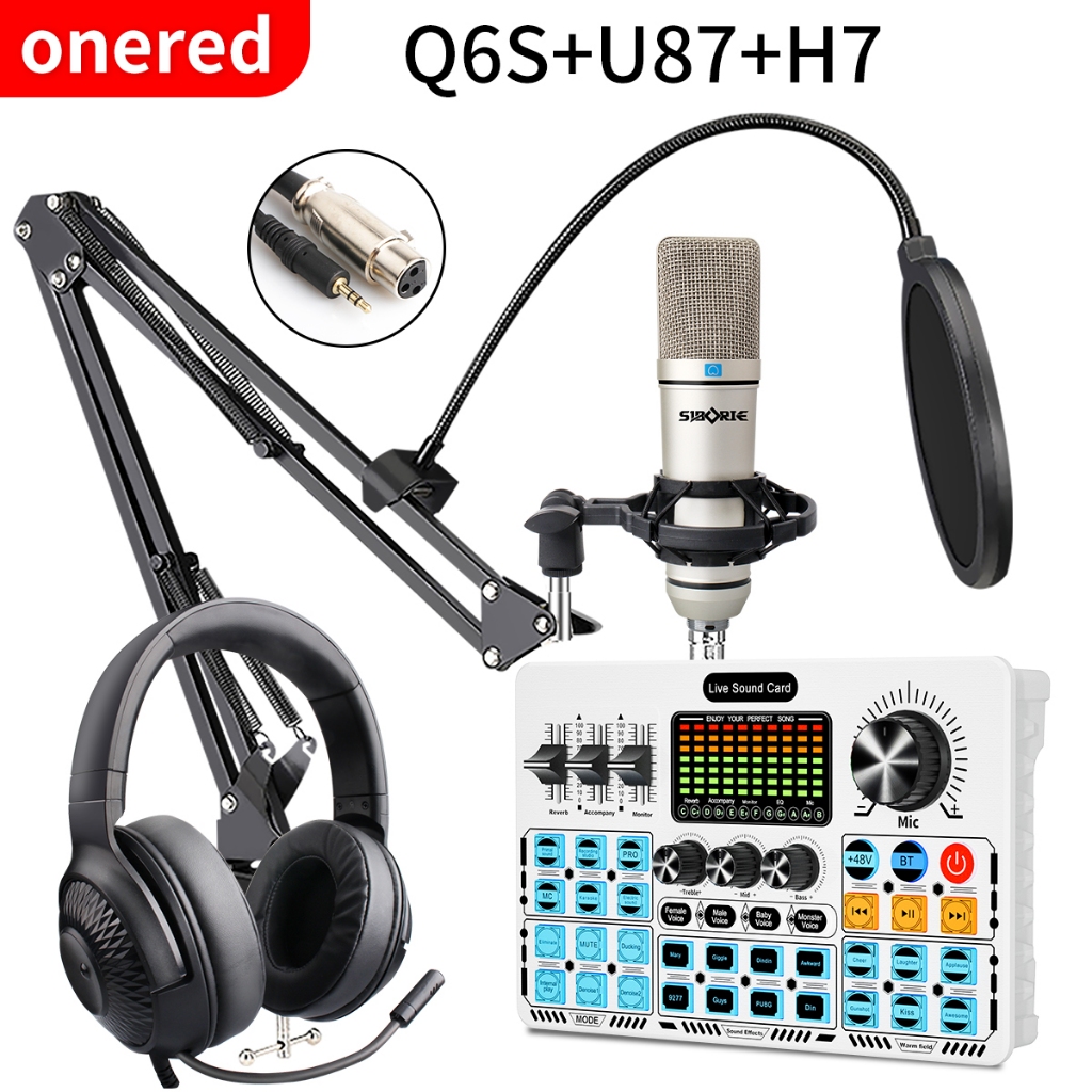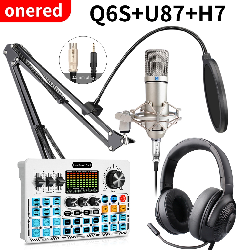 Onered【Original】Q6S+U87+H7 Paket lengkap sound card headset mic 3 in 1 set for Streaming Langsung Satu set dudukan lengkap gratis