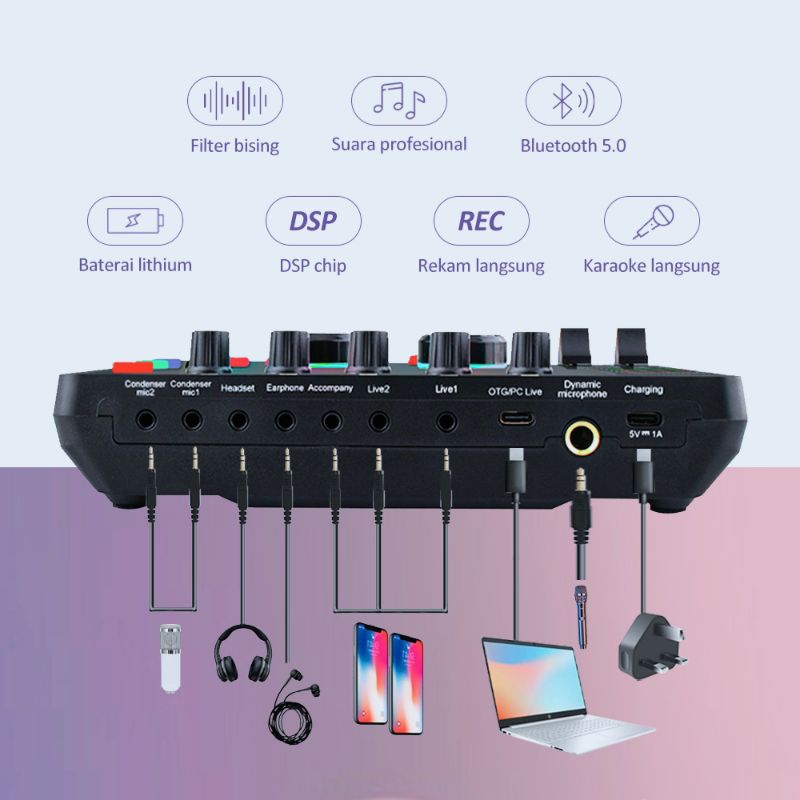 Kimiso F999+NX490 Set Paket Sound Card Plus Headphone Peralatan Alat Streaming atau Bernyanyi serta Karaoke