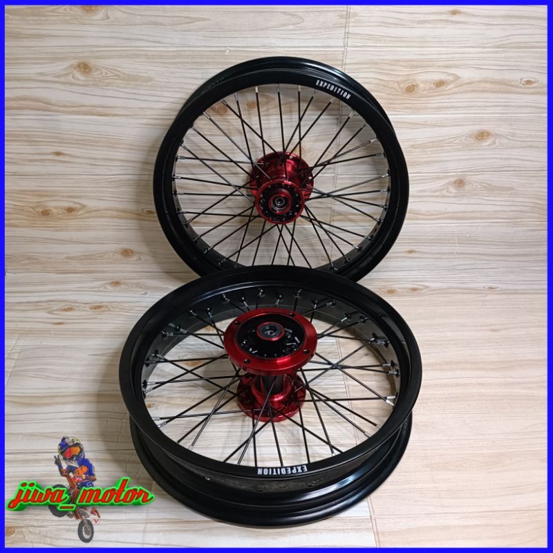 [Star] Velg Wheelset Supermoto KLX 150 D Tracker 150 Ring 17 Expedition Tromol Scarlet Twotone