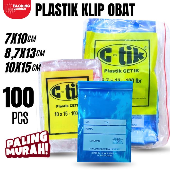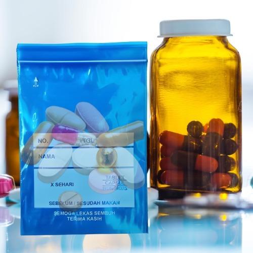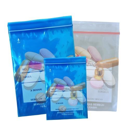 DP 0 PLASTIK KLIP ZIP ZIPLOCK ZIPPER OBAT APOTEK WARNA ISI 100 PCS SABLON 87X13 BIRU