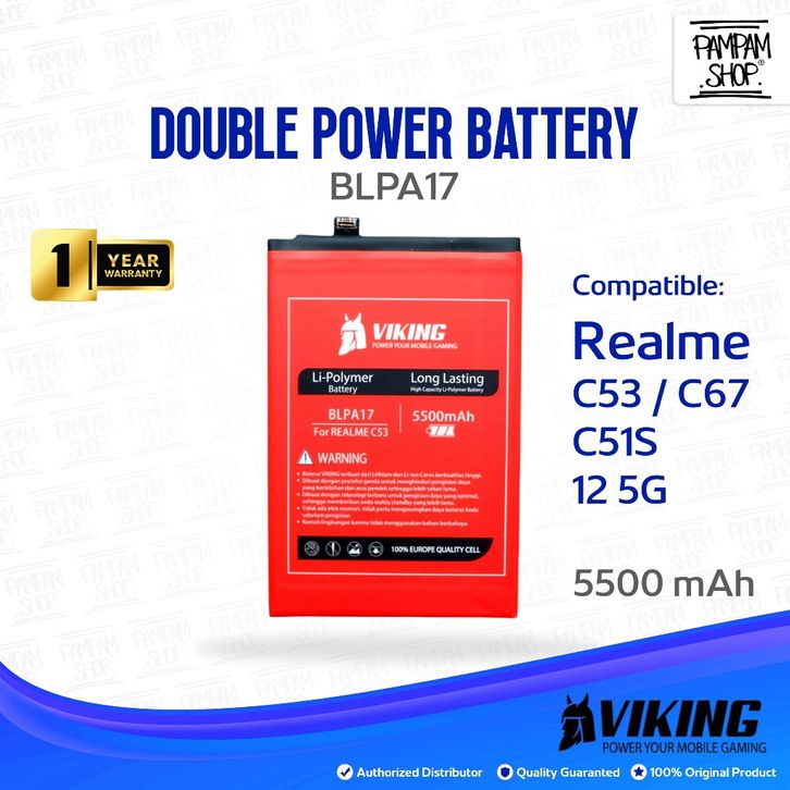 VIKING Double Power Baterai BLPA17 Realme C53 C67 C51S 4G 12 5G Batre Batrai Battery Original Ori HP Handphone Dual BLP