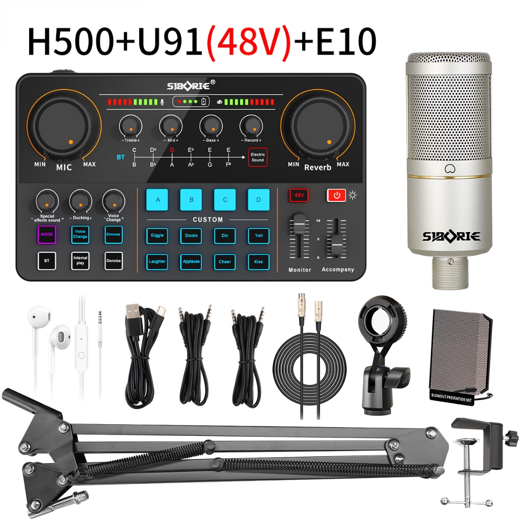 Siborie【】H500+U91(48V)+E10 Paket Lengkap Sound Card Mic Set Pengiriman cepat