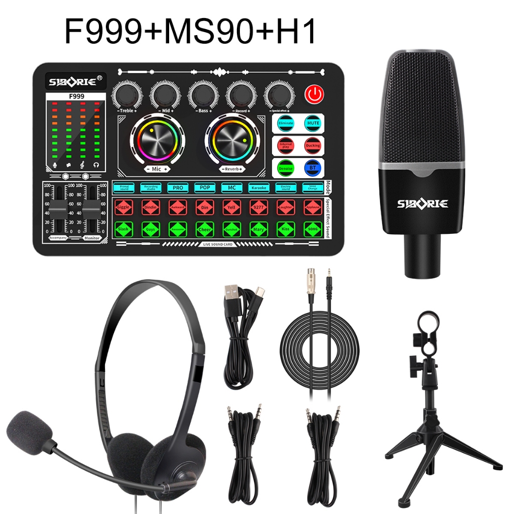Onered【】F999+MS90+H1 Paket Lengkap soundcard mic headset Set Pengiriman cepat