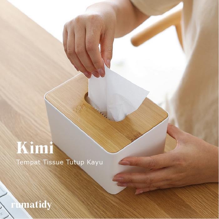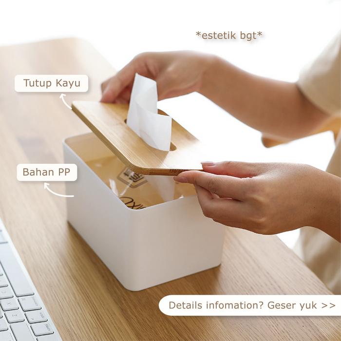 DP 0 KIMI TEMPAT TISSUE PUTIH TUTUP KAYU ESTETIK AESTHETIC TISSUE BOX DAPUR KAMAR MANDI KO
