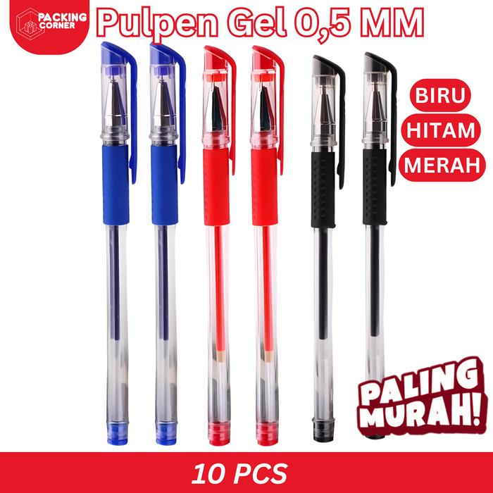 DP 0 PULPEN GEL INK PEN BULLET TIP 05MM PENA ALAT TULIS HITAM MERAH BIRU MERAH 10PCS